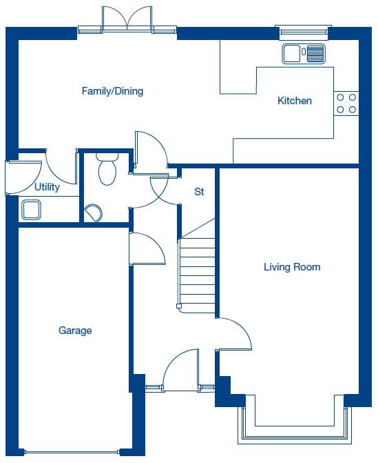 The Banbury features 4 well-sized bedrooms in a beautifully designed detached home that balances everyday living with space for entertaining. The living room is the perfect place to unwind after a busy day. Its bay window is a striking feature which enhances the sense of space and brightness. To the rear is an open-plan kitchen, dining and family area, with French doors leading to the garden. A utility room provides extra convenience and storage on the ground floor.