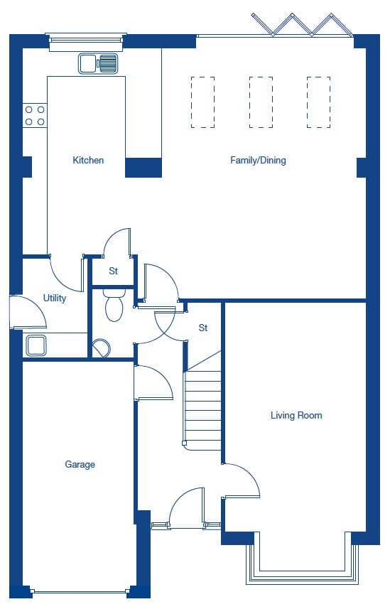 The Bentley is a spacious 4 bedroom detached home, combining classic design with modern family living. The versatile living room, complete with bay window, is the perfect spot to host guests or enjoy quiet evenings. At the heart of the home is a generous kitchen, dining and family space, with bi fold doors opening onto the garden and a separate utility room for added practicality. On the ground floor of the home you will discover ample storage, with designated storage space under the stairs and in the kitchen, dining and family room.