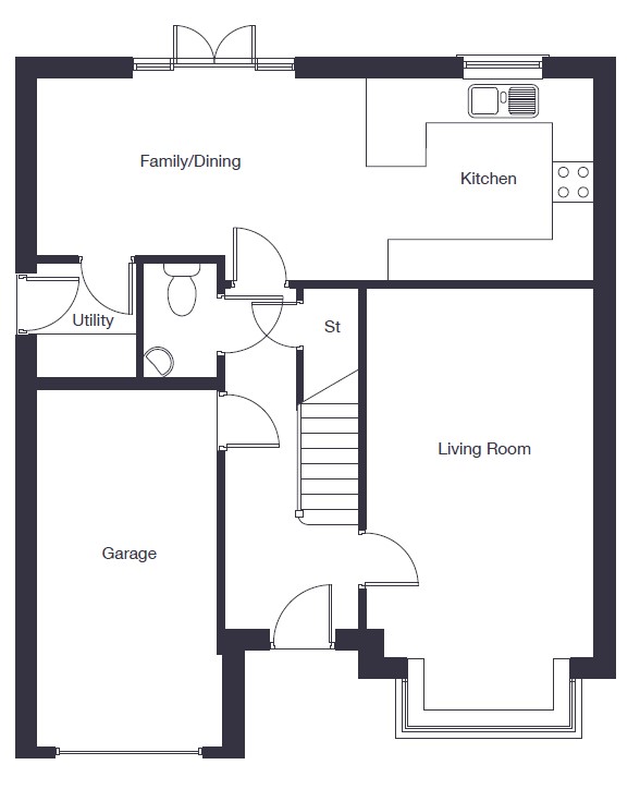 The Banbury features 4 well-sized bedrooms in a beautifully designed detached home that balances everyday living with space for entertaining. The living room is the perfect place to unwind after a busy day. Its bay window is a striking feature which enhances the sense of space and brightness. To the rear is an open-plan kitchen, dining and family area, with French doors leading to the garden. A utility room provides extra convenience and storage on the ground floor.