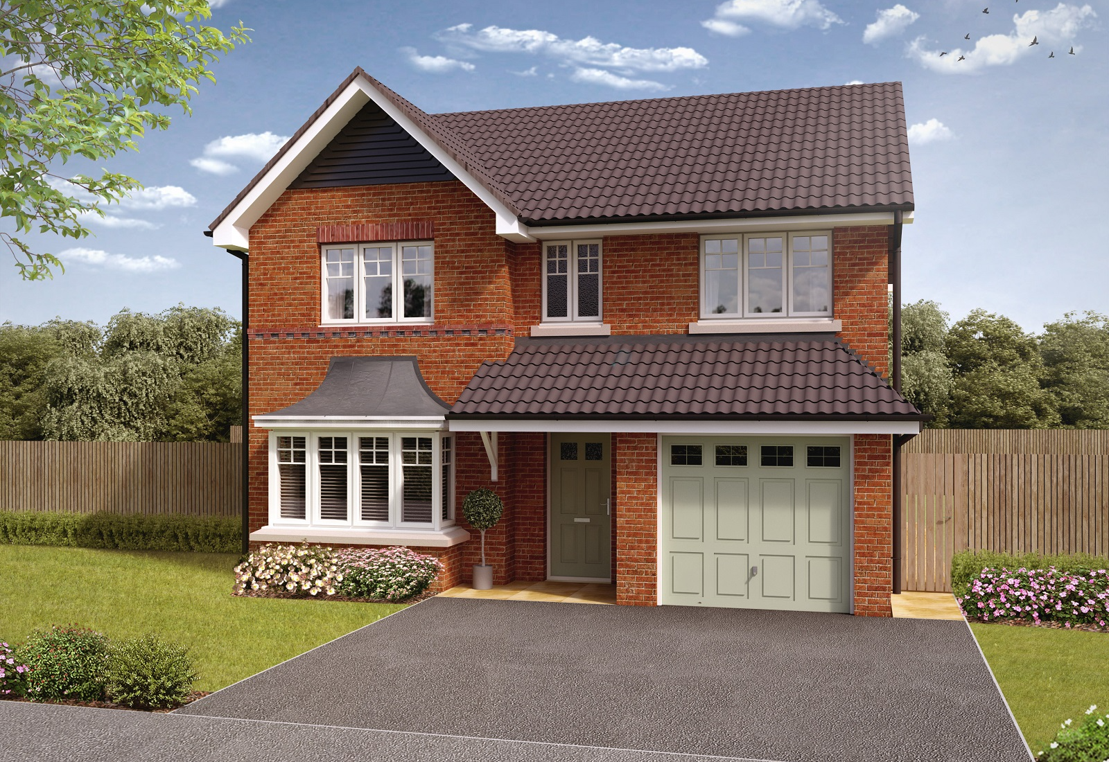 The Banbury is a 4 bedroom detached home with integral single garage, offering spacious family living. Its open-plan kitchen and dining space with French doors forms the heart of the home.