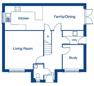 The Hollin B is a spacious 4 bedroom detached home where style meets practicality. Upon entering, you are greeted by a spacious hallway, which leads to the living room at the front of the home, a calm setting to relax. Across the hallway is the studio, ideal for those who work from home. To the rear, the open-plan kitchen and dining area create the heart of the home, enhanced by French doors leading out to the garden. A utility room provides added convenience on the ground floor.